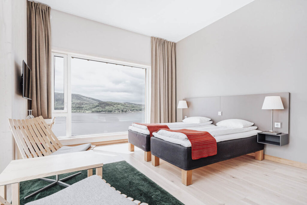 Hotellet byr på lyse og velutstyrte møterom, en nordisk-inspirert restaurant, bar og loungeområde, samt enkel tilgang til badeanlegg, treningssenter og vakre uteområder. Med utsikt over Mjøsa og gangavstand til både sentrum og togstasjon, har du alt du trenger – rett utenfor døren.