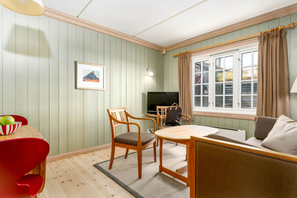 - Et lyst og hyggelig møterom med utsikt mot fjellene – perfekt for mindre møter og samtaler i rolige omgivelser.