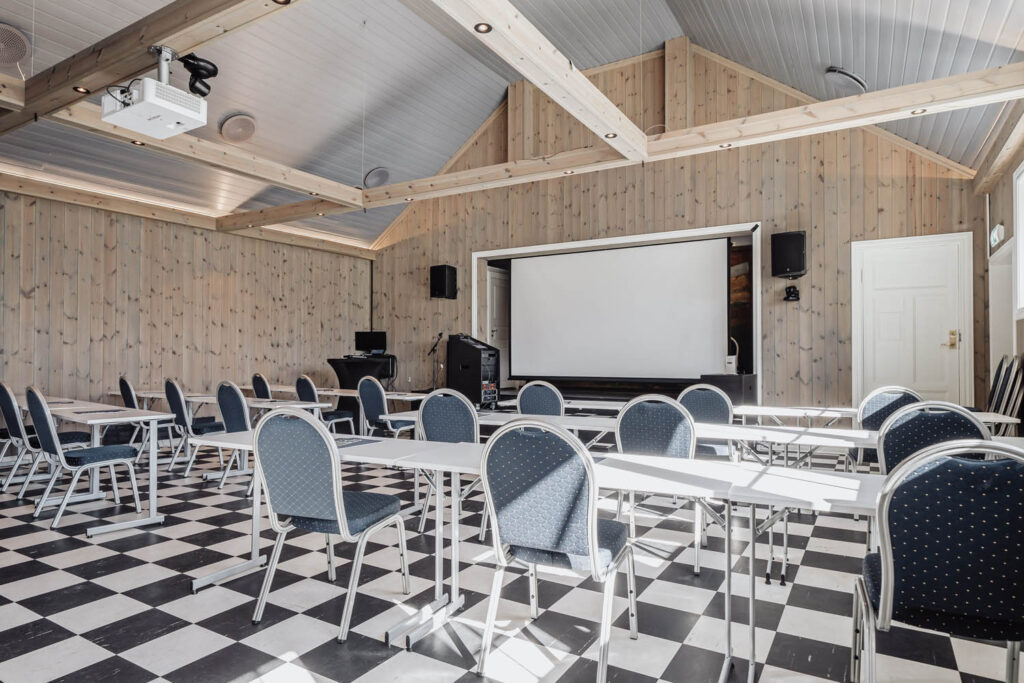 - Utstyrt med lerret og prosjektor